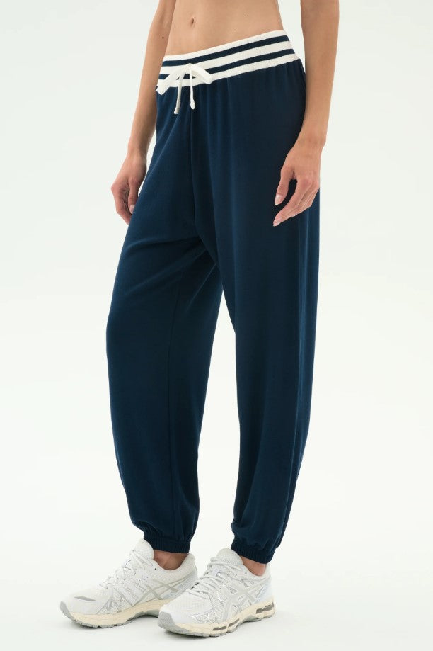 Andie Oversized Fleece Sweatpant w/Stripe - Indigo
