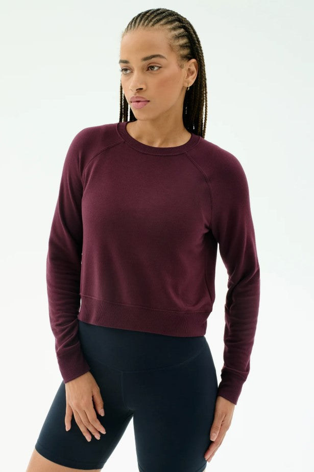 Splits' raglan sleeve crewneck in a long sleeve pullover that is soft, versatile and ultra-flattering. Semi cropped length hits just above the hip.