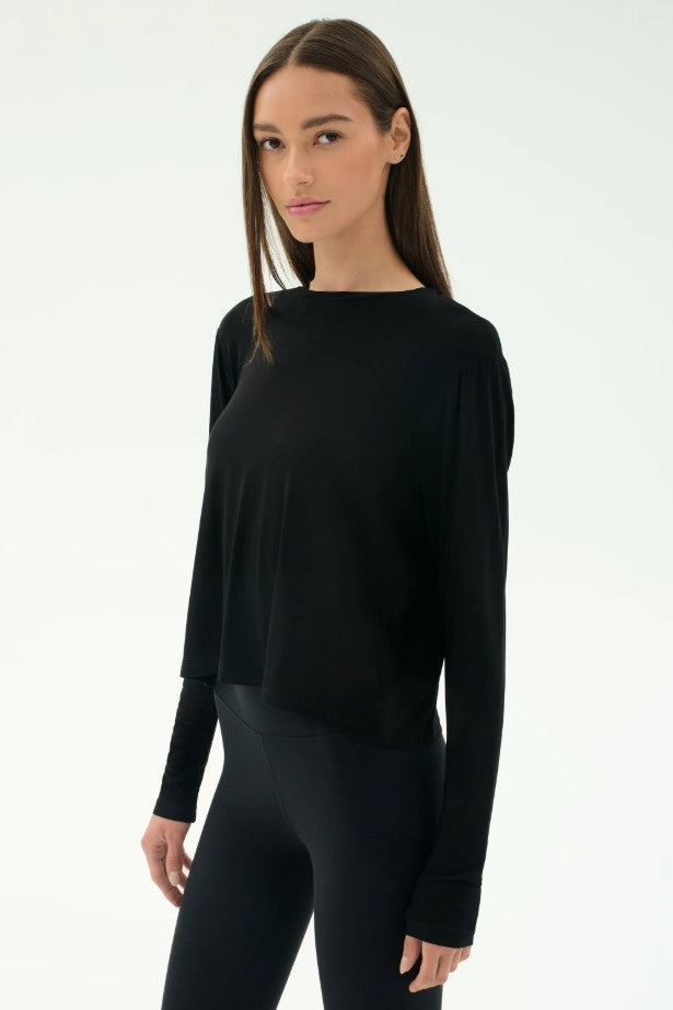 Splits' easy to wear tee now in a long sleeve. The Djuna Long Sleeve is the perfect option for your cool weather outdoor workouts.