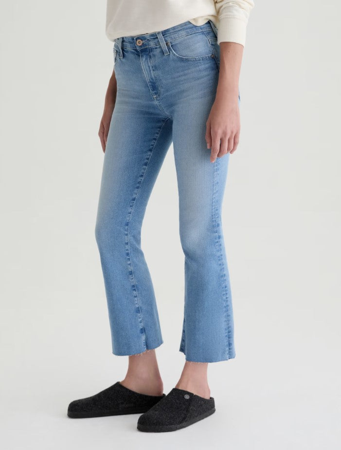 The Farrah Boot Crop is a mid-rise bootcut jean crafted from 10.5 oz. Empower Stretch Denim. Cut from a comfort stretch fabrication, this AG-ed™ style features vintage raw hems and a wash that replicates 14 years of natural wear for an authentic, lived-in look. Crafted from premium denim sourced from Japan’s Kaihara Mill.