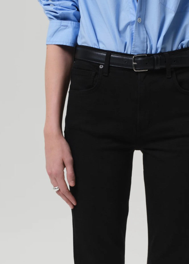 The Isola is a mid-rise cropped bootcut designed for everyday ease. Crafted from soft stretch denim with a lightweight feel, it offers a flattering fit with lasting comfort. The Plush Black wash—a clean, true black—adds a sleek, polished finish. Perfect with everything from heels to sneakers.