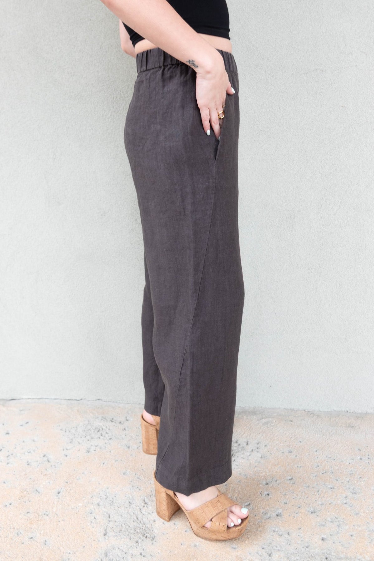 Linen Clean Front Crop - Caviar