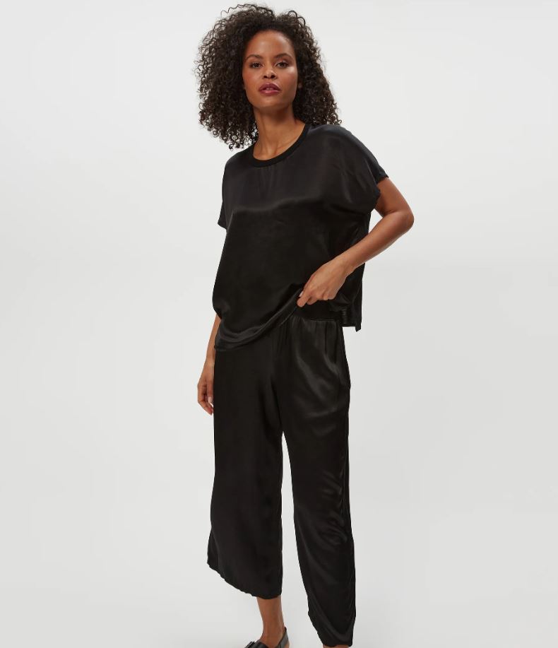Lean into comfort in the Sacha Cropped Pant. Crafted in our washable satin fabric, these pants feature a relaxed, cropped fit and a wide elasticized waistband. Perfect to pair back to a satin top or your favorite tee or tank.