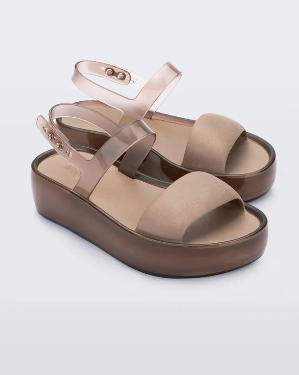 The Melissa Float Platform is your new favorite two-strap sandal. With a stylish mix of translucent jelly shine and solid matte finishes, the textural contrasts keep this platform visually interesting while a blend of PVC and EVA make it unbelievably comfortable.