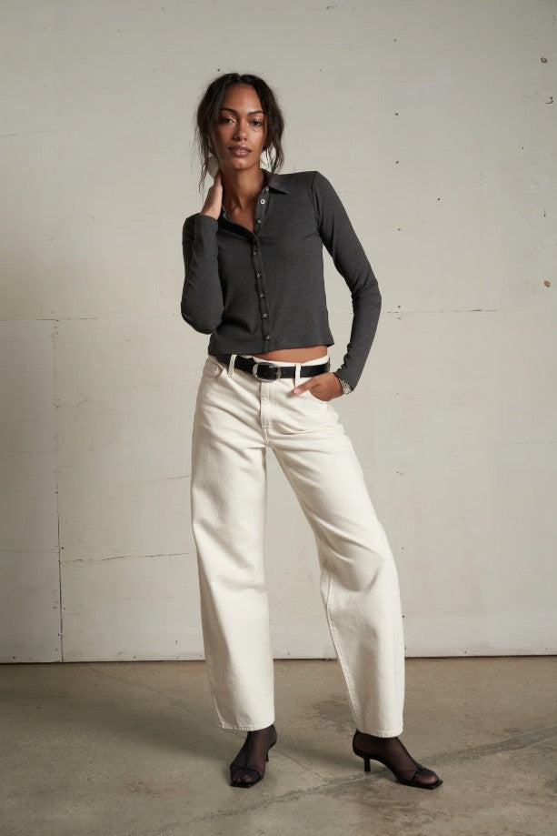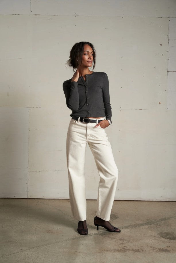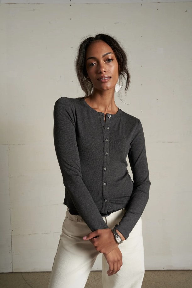 Maureen Luxe Rib Crew Neck Cardigan - Charcoal