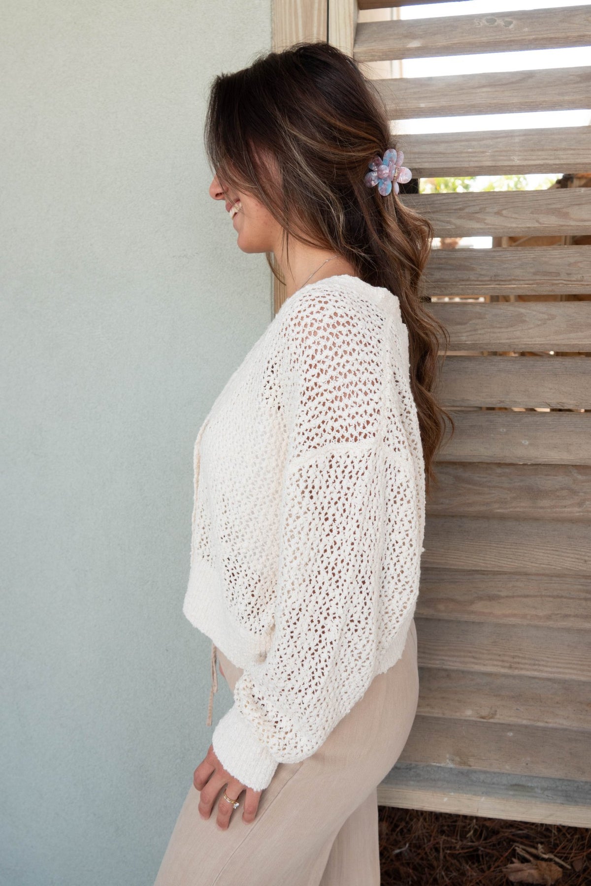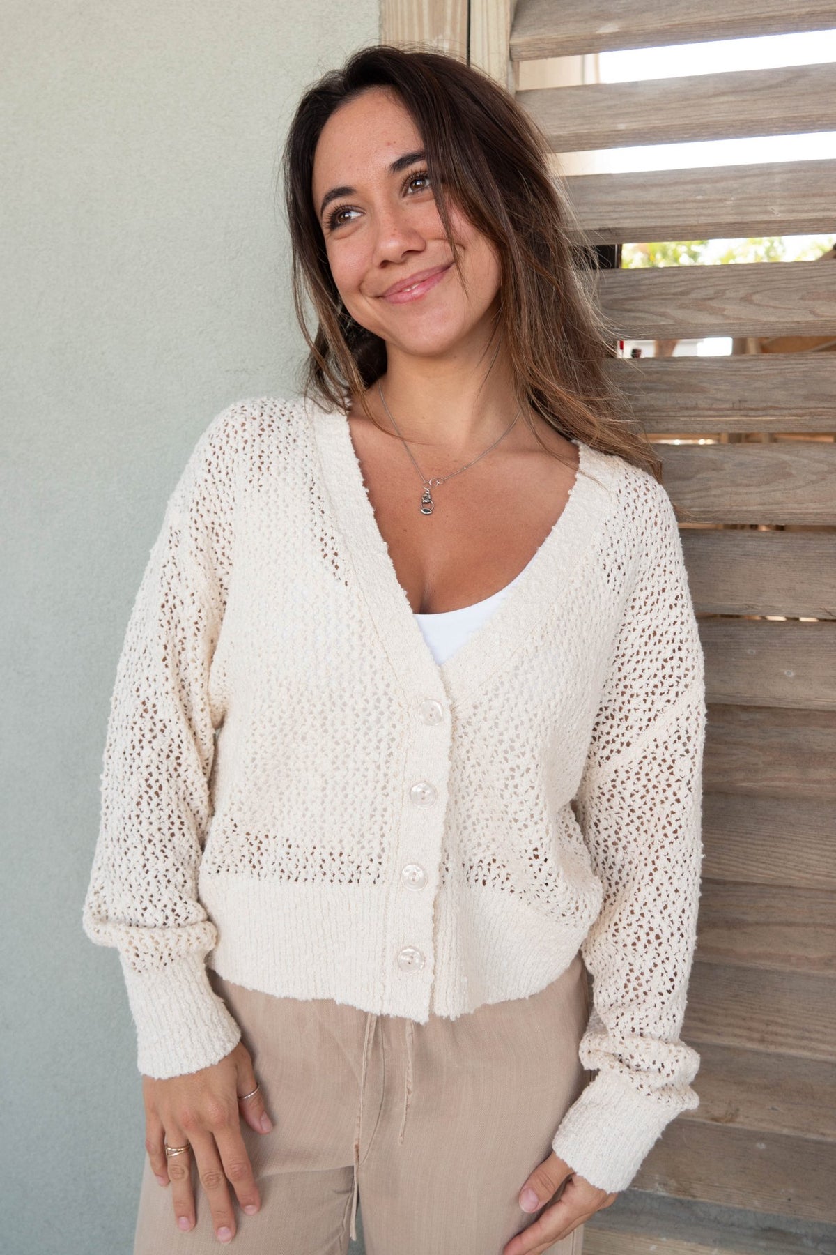 The Bradshaw Cardi is stylish and easy to wear on a warm sunny day. Layer over your swimwear of tank top of choice.