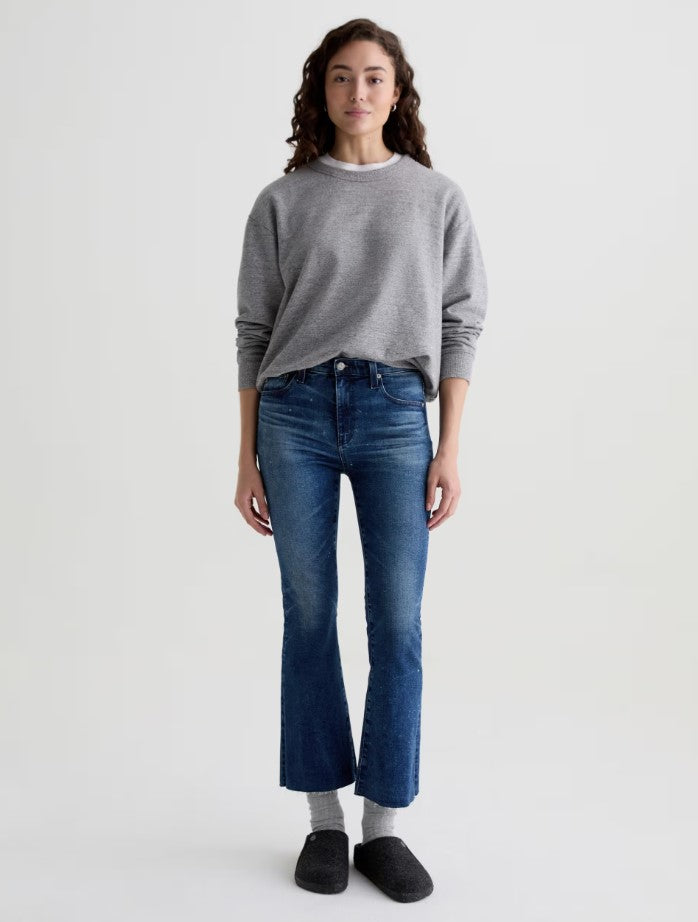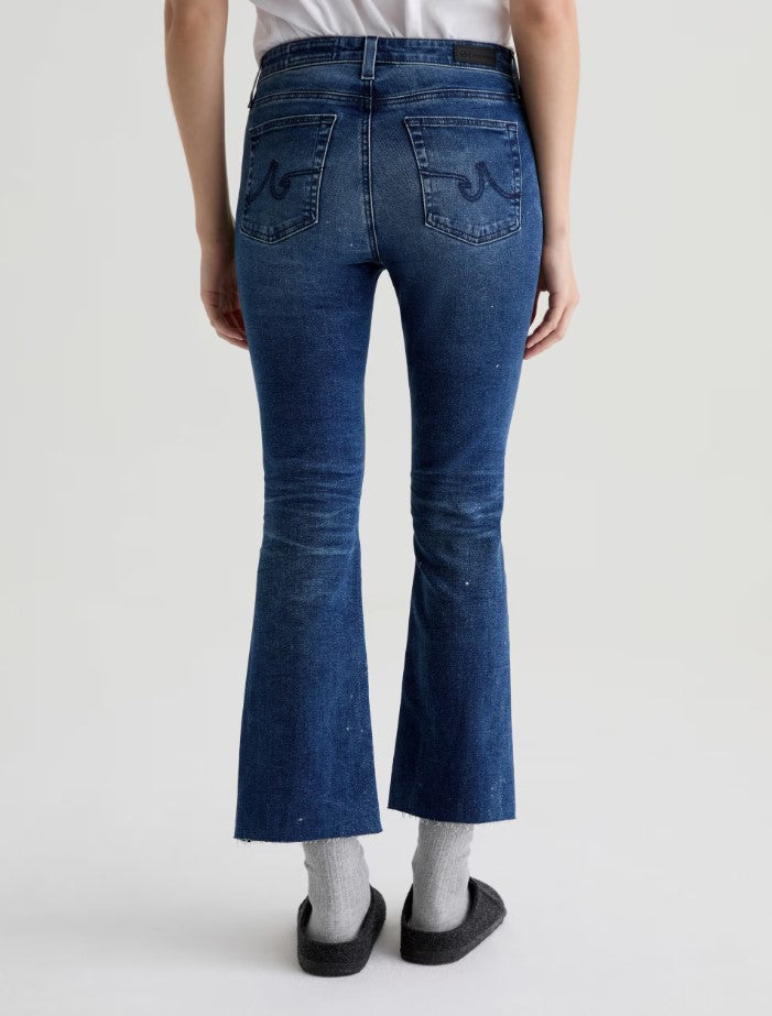 The Farrah Boot Crop is a bootcut jean with a mid-rise waist and flattering silhouette. Features a fitted hip and thigh with a subtle flare from the knee down. Crafted from a midweight power stretch denim for all-day comfort and premium recovery. Shown here in an AG-ed™ 7 Years Render that is uniquely washed down and faded to mimic a genuine pair of vintage jeans