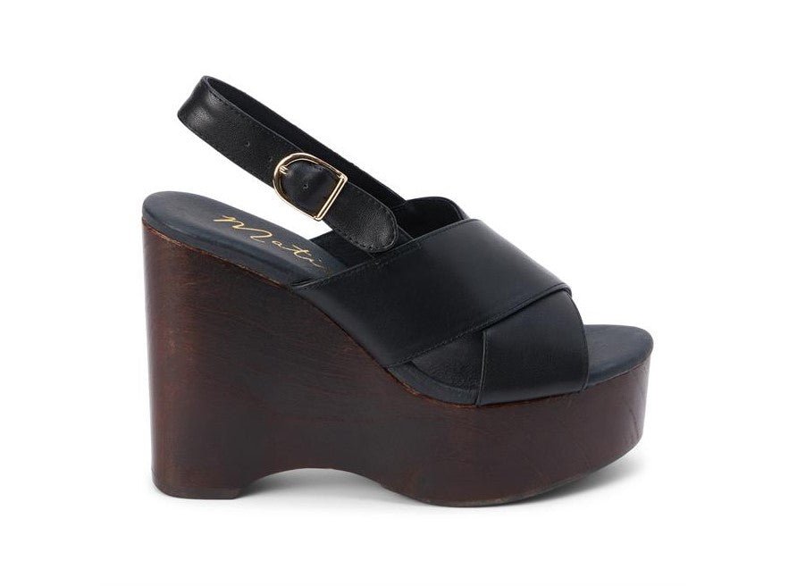 Step into your new go-to for comfortable height and effortless style: The Fox Wedge by Matisse. This black platform wedge with a wood bottom adds a cute and flattering lift to any look, making it a versatile essential.