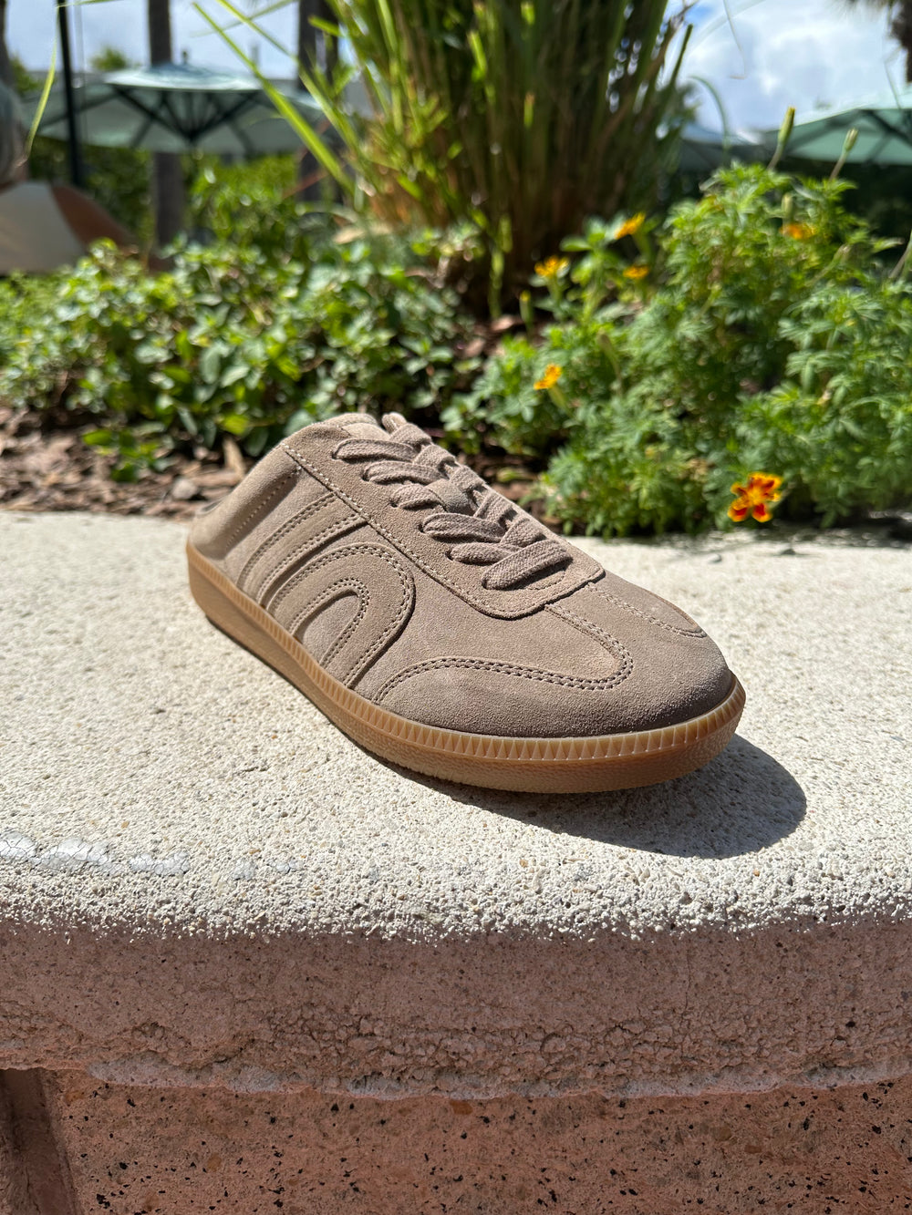 Up-Front Sneaker - Taupe Distressed Suede