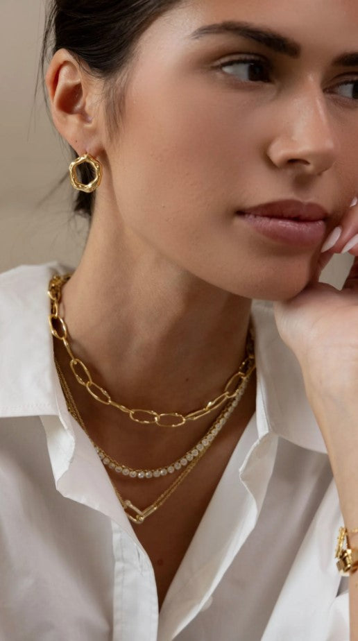 Beautify your ears with the Janelle Studs! Crafted with precision, these earrings are 18k gold plated for a luxurious look that won't fade. Make a subtle yet dazzling statement with the Janelle Studs!